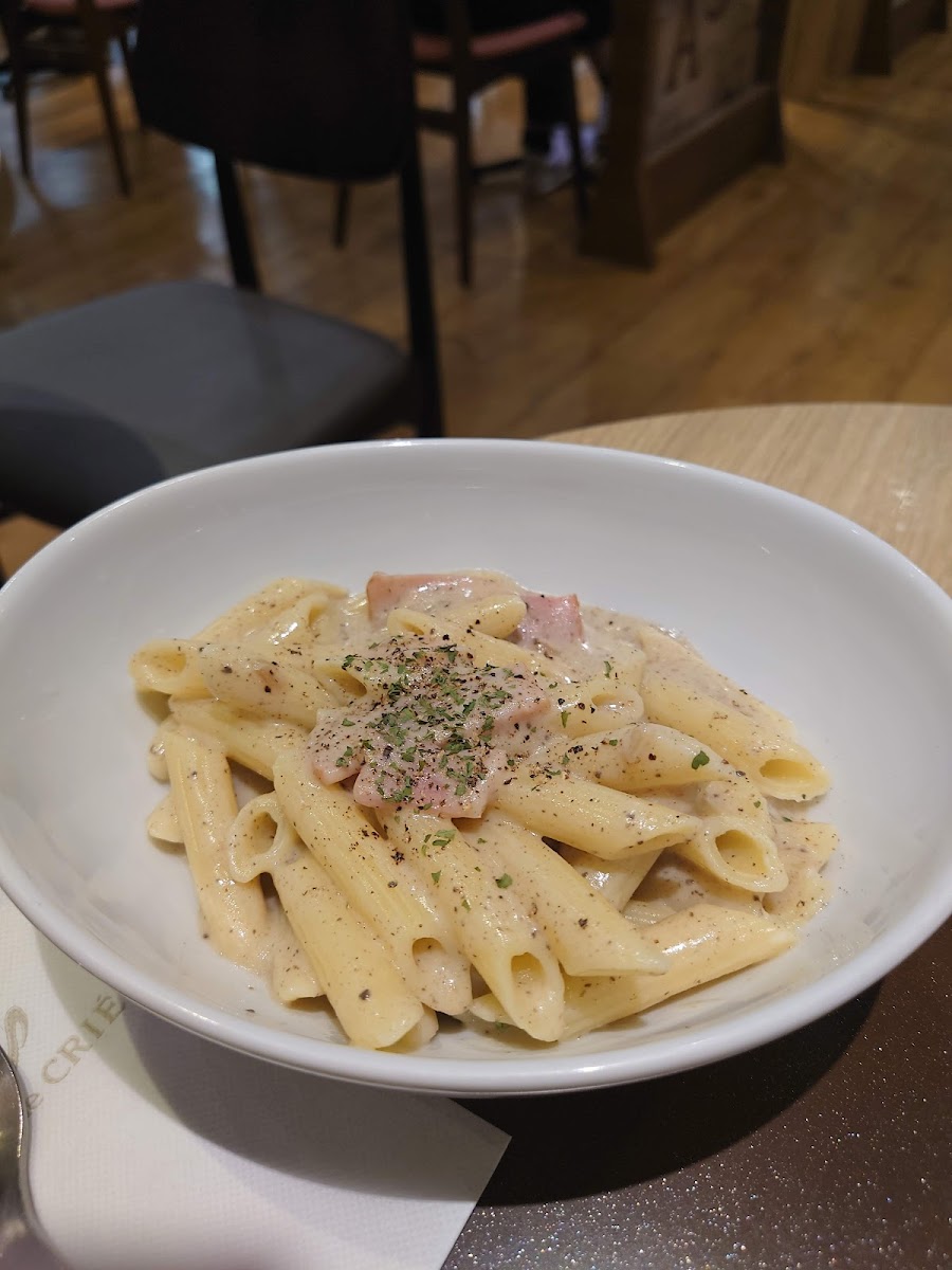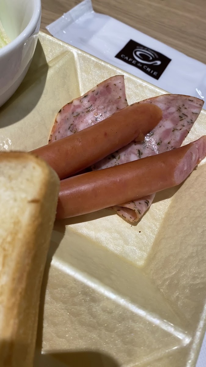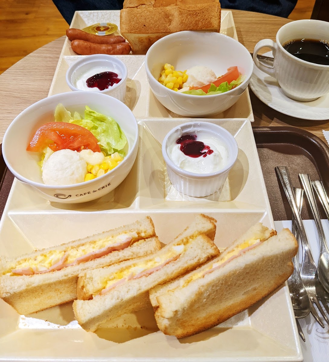 Customer feedback highlights the sensory pleasures of Cafe de Crie, with one reviewer raving about the banana juice for just 480 yen and the convenience of their self-serve water and basket for belongings. The ambiance is kept lively but can get a bit bustling, especially during peak hours when a mix of business people and casual visitors create an enjoyable atmosphere.